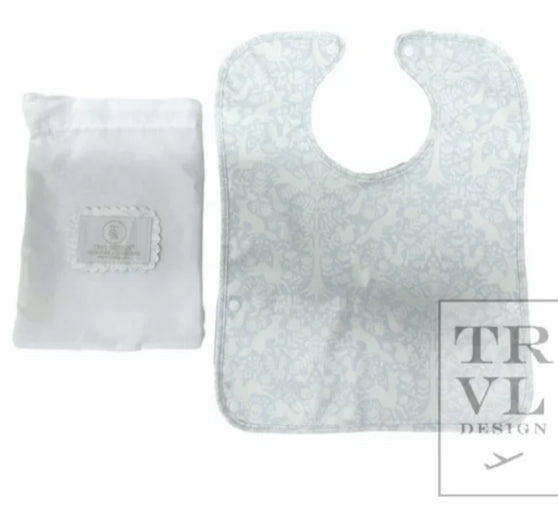 Little ones will look super cute at meal and snack time with TRVL's Easy to wipe clean or simply place in your washing machine and hang dry.