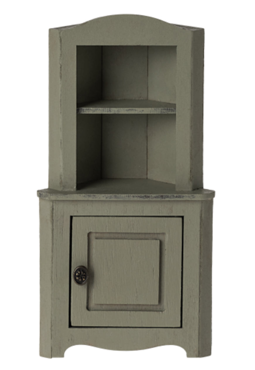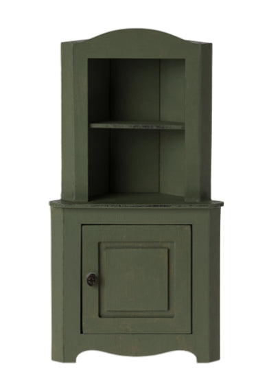 The perfect closet to store a lot of stuff. It fits perfectly into a corner so it will look stylish in the home decoration. It has a vintage finish - varriation in the paint may occur. This closet fits perfectly into the mouse hole farm house.