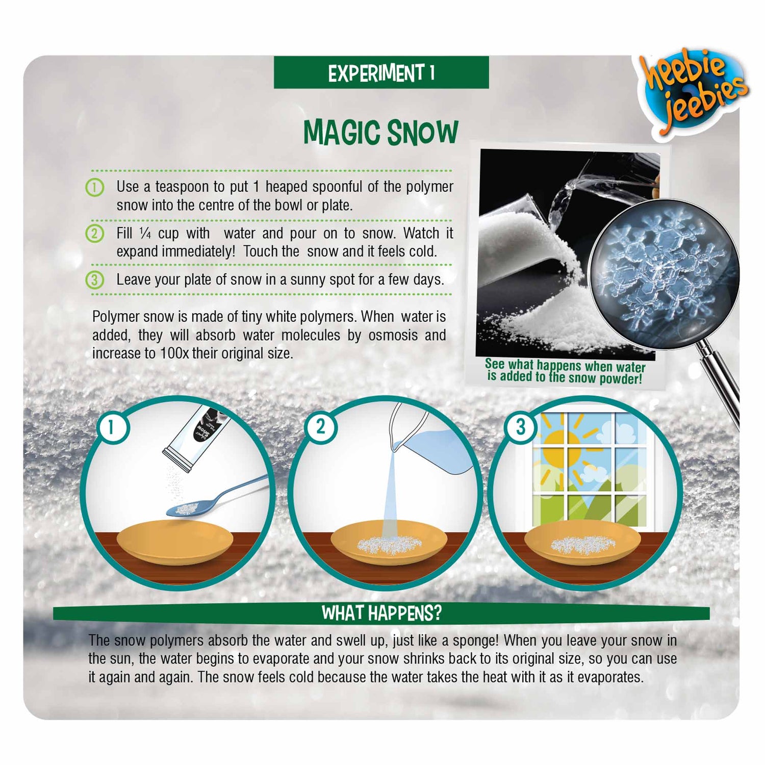 Make a glow stick, create chalk that you can see in the dark, and glowing snow you can build figures with or grow plants in! Learn all about photoluminescence and how things glow.