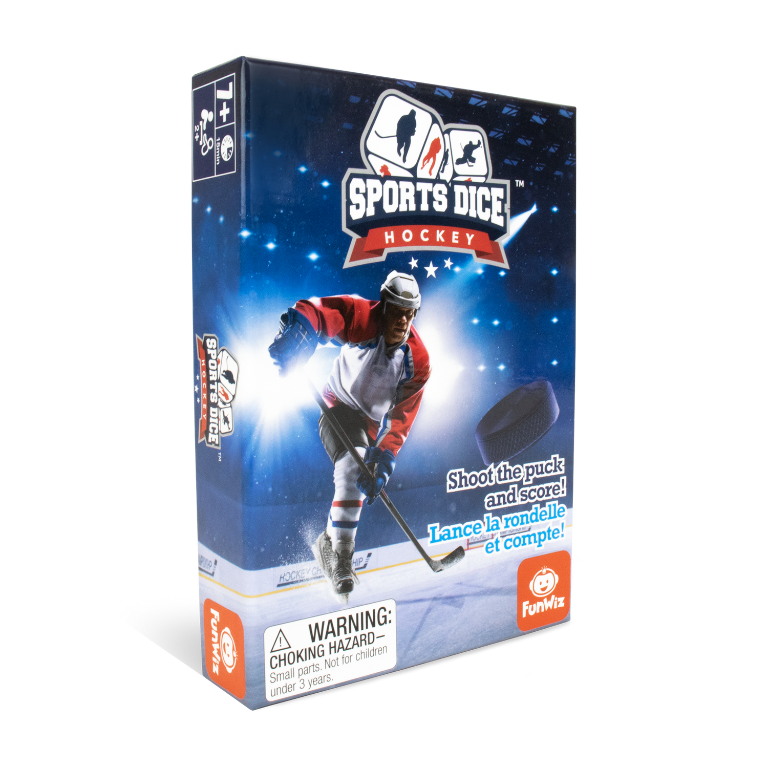 Shoot the puck and score with Sports Dice Hockey! Sports Dice Hockey is a fast paced, easy to learn and quick to play dice game that gives players all the action of a real Hockey game. Roll your dice and shoot the puck in the opponent’s net to score! The player with the most points after 3 periods wins the game. Sports Dice Hockey is an ideal game for all Hockey fans ages 7 and up.