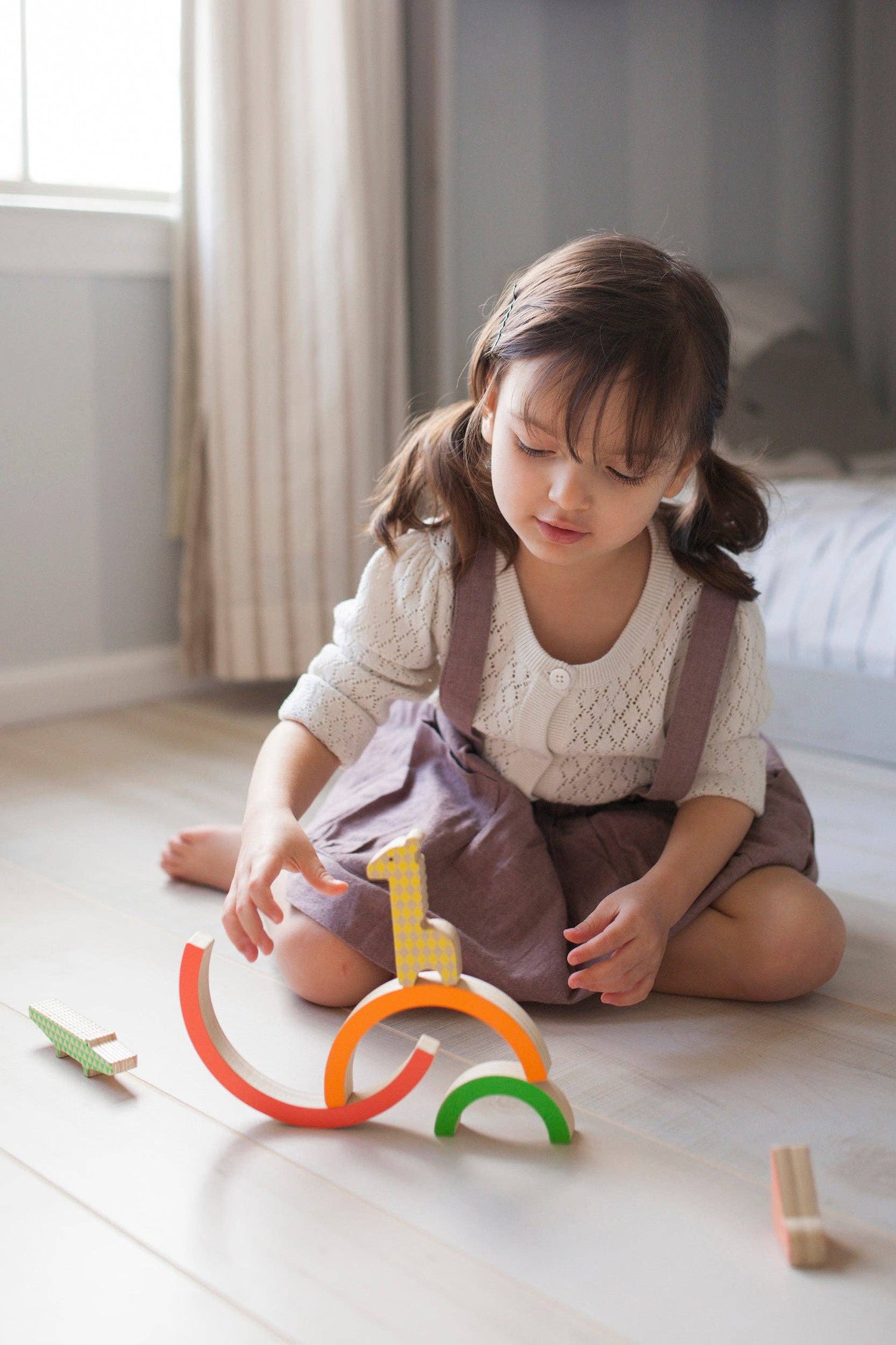 Set includes 5 rainbow pieces, 5 animals, and 1 die