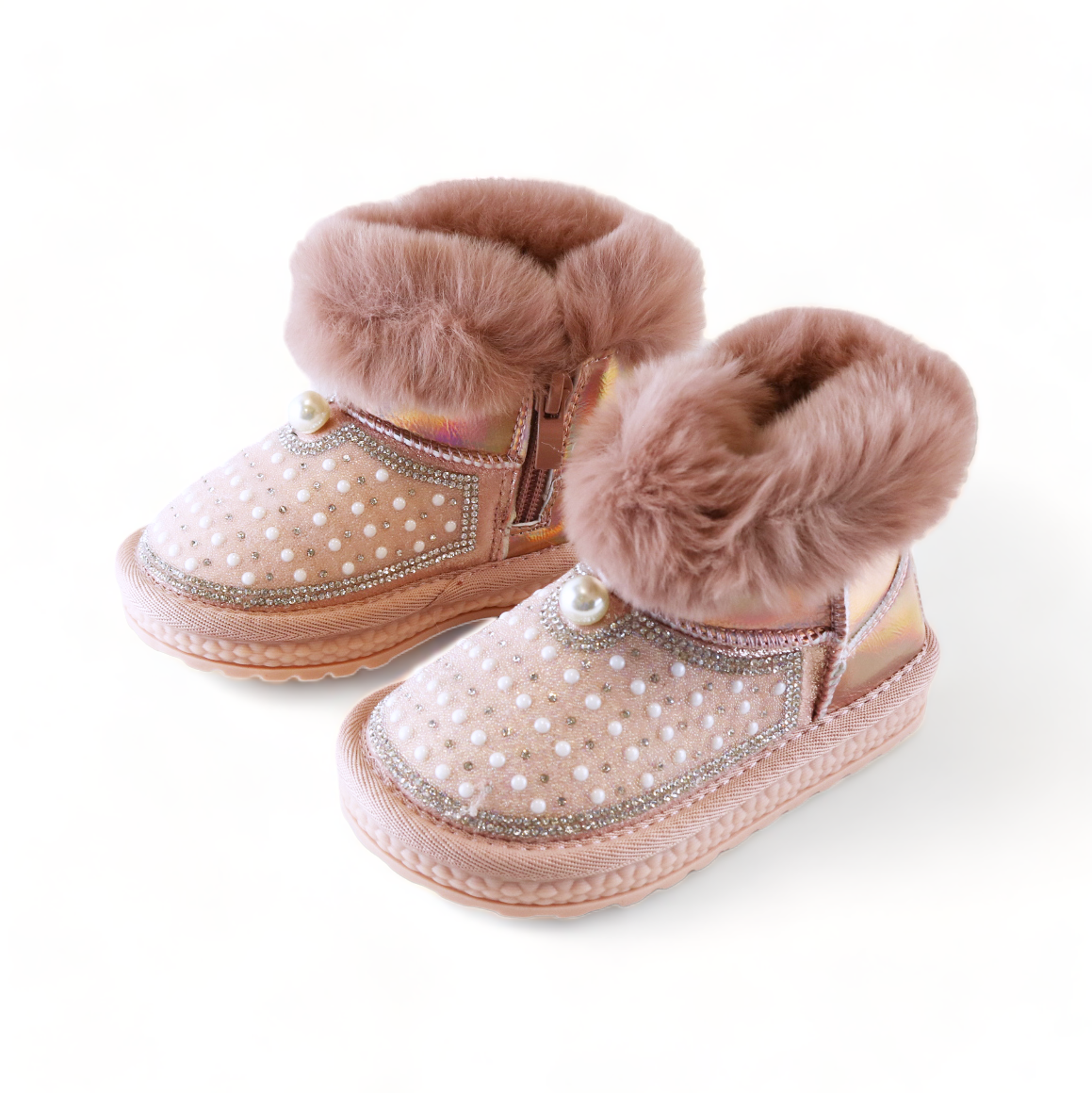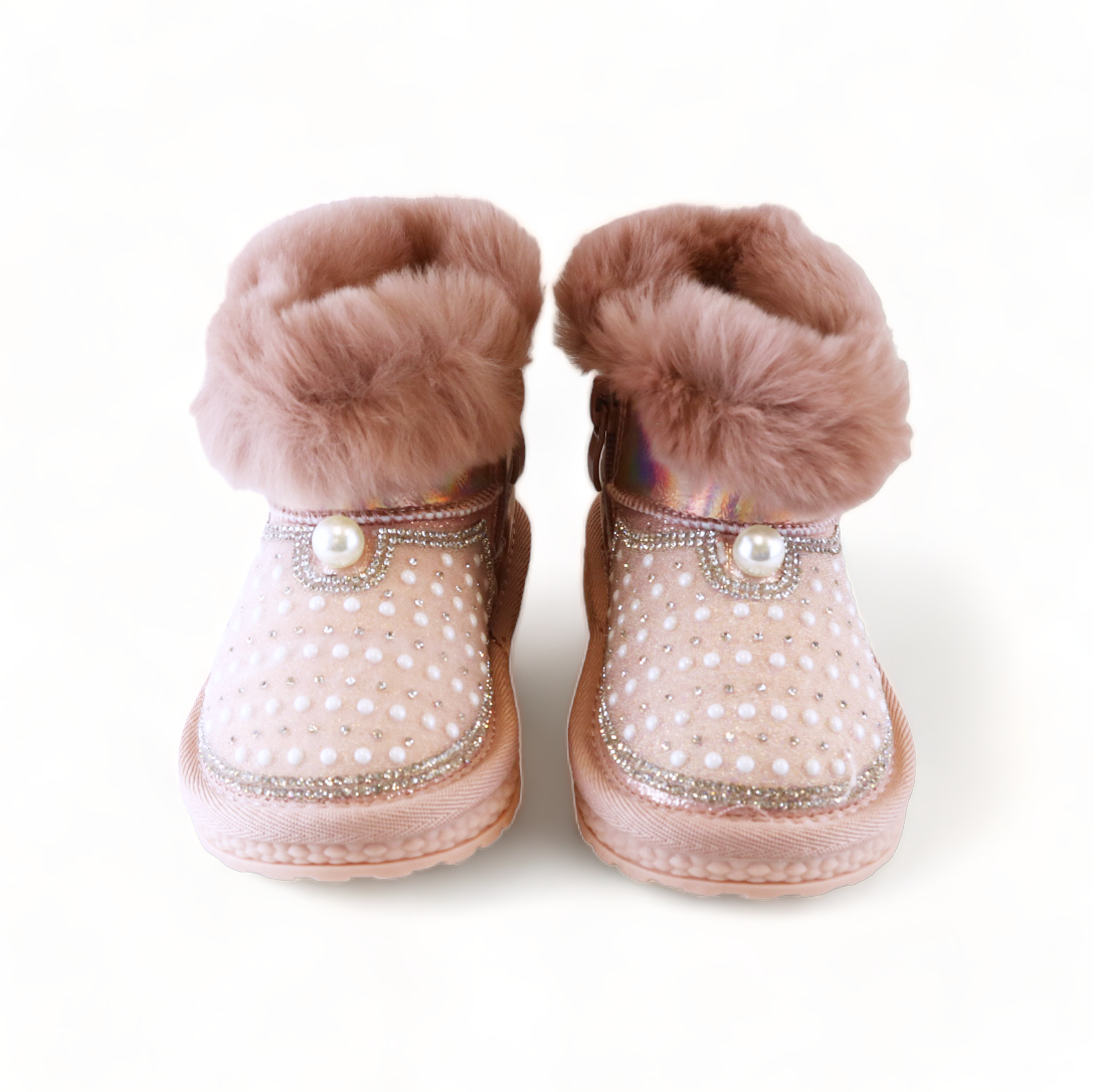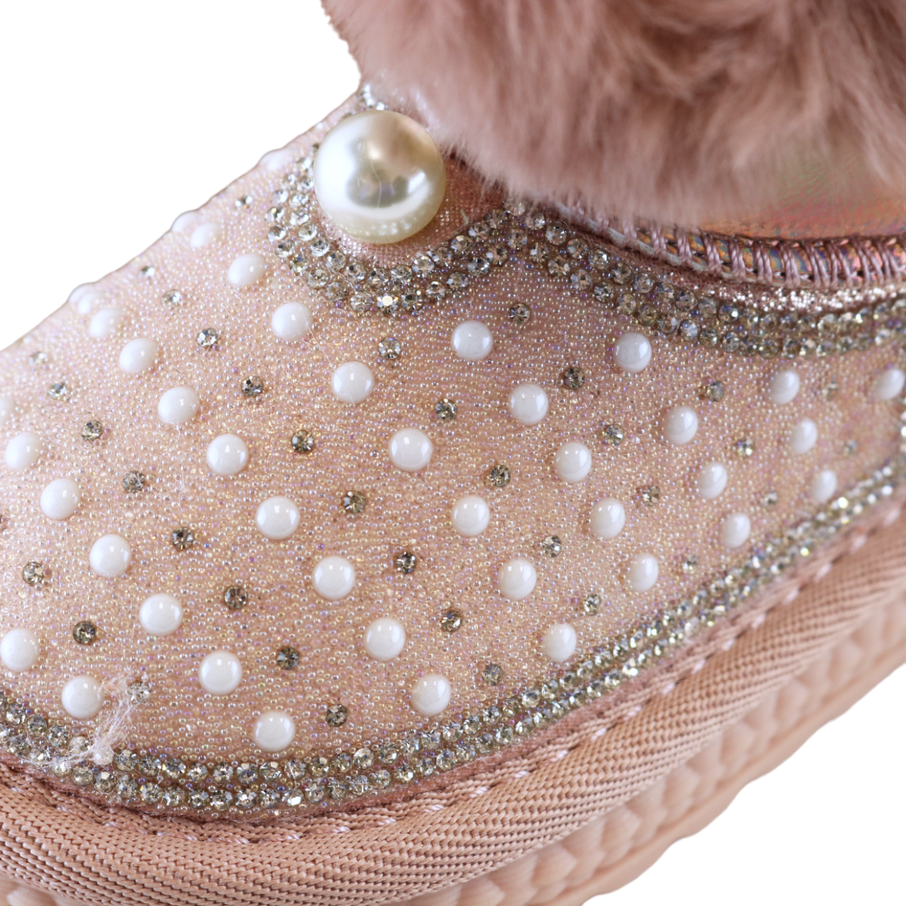 PINK Handcraft Rhinestone & Pearl Furry Boot
