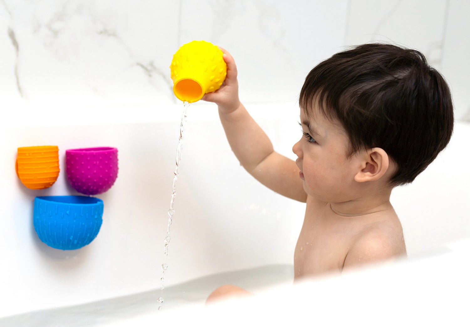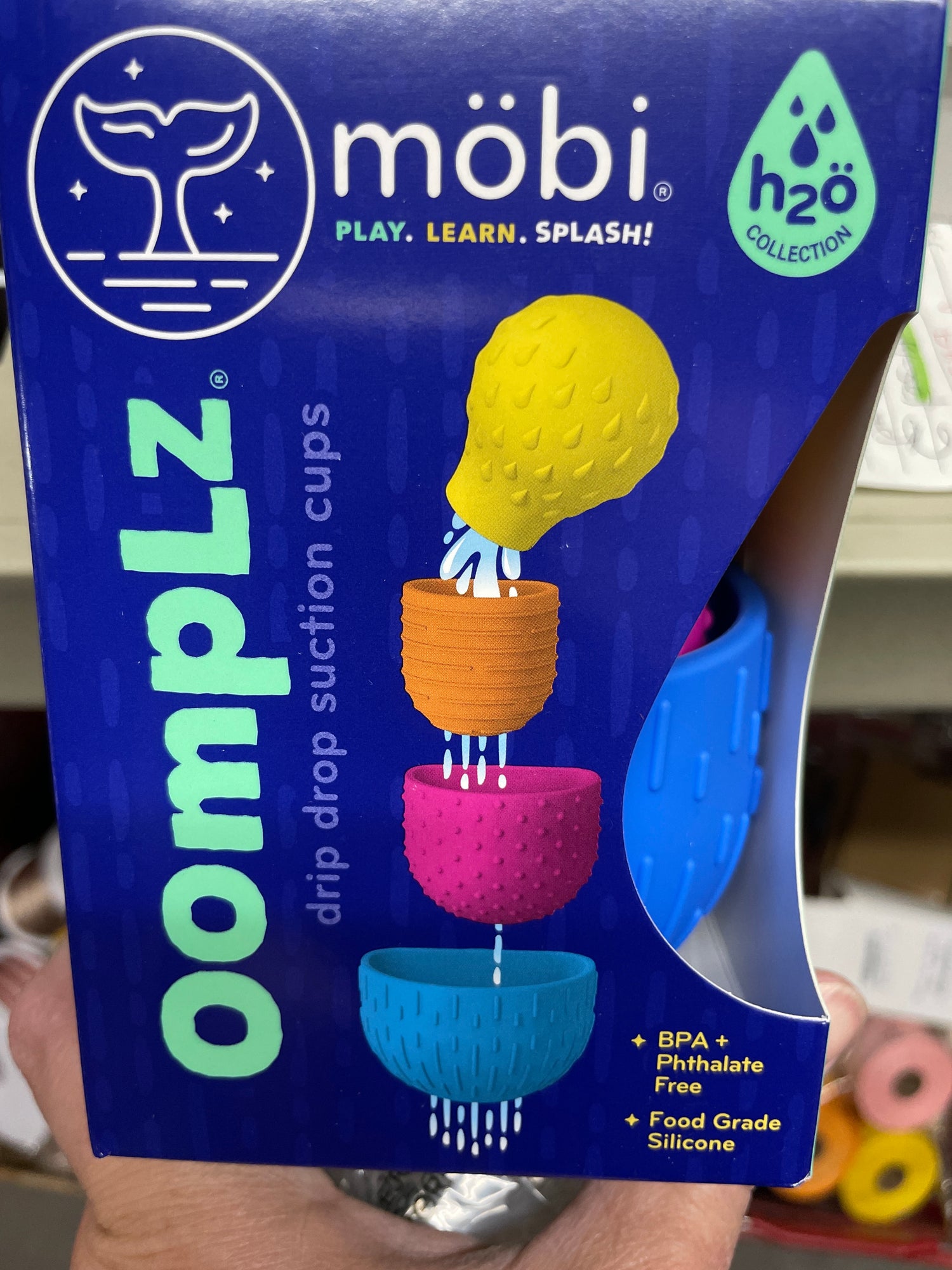 Ready for some drip drop fun? Oomplz is a soft, safe bath toy that allows little ones to explore gravity, water transference, suction power, and different sprinkle effects. Set contains 3 nesting cups with suction cup backing, each with its own sprinkle effect, plus one water squirter. Created by parents, Mobi toys are made from food-grade silicone in bright, eye-catching colors. Each toy is thoughtfully designed to encourage sensory exploration, problem solving, cause and effect, early language development and more.