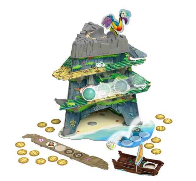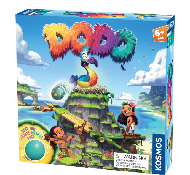 Oh no, you silly dodo, don't push your egg down the mountain! This fun, fast cooperative game challenges players to race against gravity. Work together to roll the die, collect materials, and build new bridges to help guide the wobbly egg safely into the boat at the base of the mountain. Quick 10 minute gameplay reinforces memory skills, builds dexterity, and guarantees giggles. For 2-4 players.