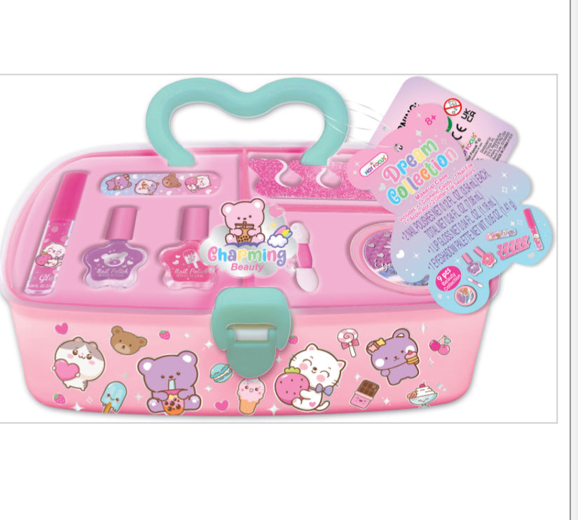 Get your glam on! A charming gift for ages 8+, this Kawaii-inspired kaboodle case is ready for sleepovers and spa days! Inside, trendy tweens find everything they need for a mini makeup party: 2 bottles of nail polish, nail file, 2 toe separators, lip gloss, tri-color eyeshadow palette, and applicator. We love that there's plenty of extra space inside to store other sleepover and glam accessories!