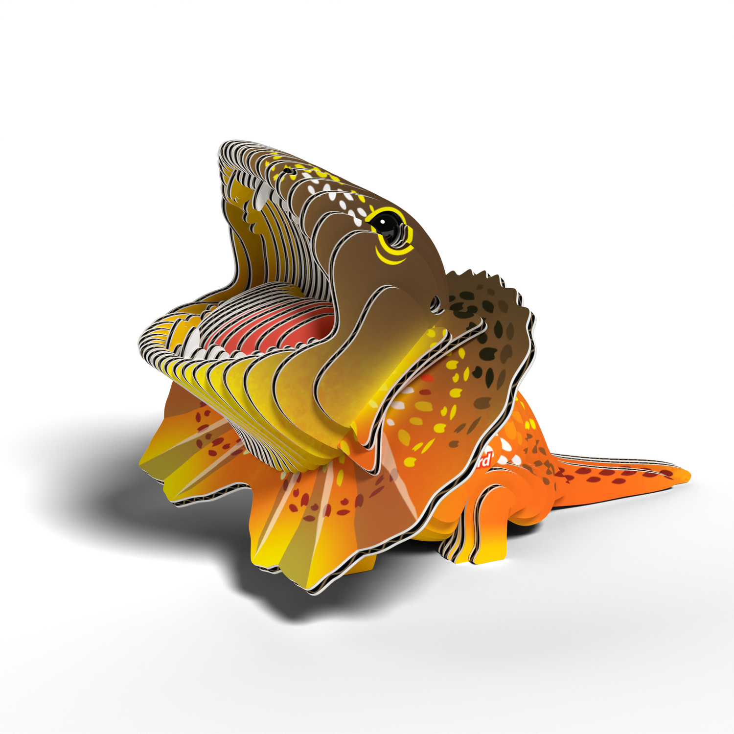 EUGY - a super-fun 3D puzzle that's eco-friendly and can be assembled in 10 to 20 minutes! Assemble this feisty frilled lizard puzzle and experience the magic of EUGY! This collectable toy is great for STEM concepts and craftable fun. It's sure to delight kids and adults alike! There are over 90 designs and counting for you to collect and enjoy!