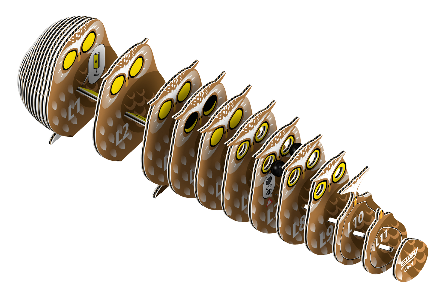 EUGY - a super-fun 3D puzzle that's eco-friendly and can be assembled in 10 to 20 minutes! This collectable toy is great for STEM concepts and craftable fun. Hoot! This Owl is fixing its stern gaze on you. Did you know that Owls can rotate their heads up to 270 degrees? This 3D Owl puzzle features the large eyes and tufted ear feathers that these birds of prey are known for. A perfect arts and craft activity to help pass some time and teach following instructions.