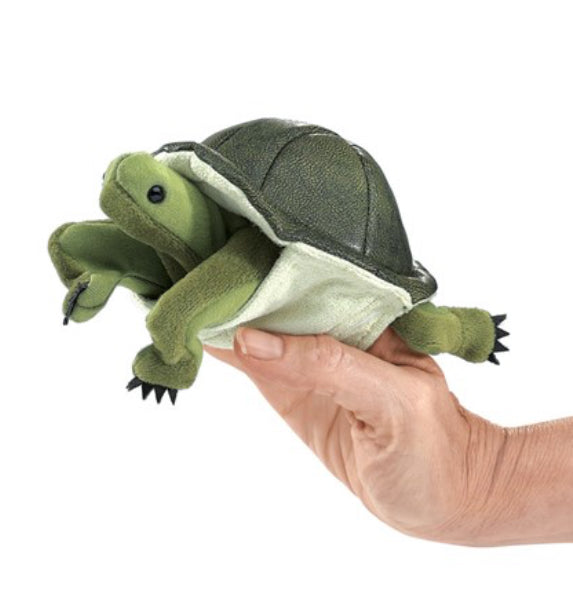 This MINI TURTLE loves to play peek-a-boo or just crawl around. Three fingers fit inside to move the head and front legs for a realistic effect.