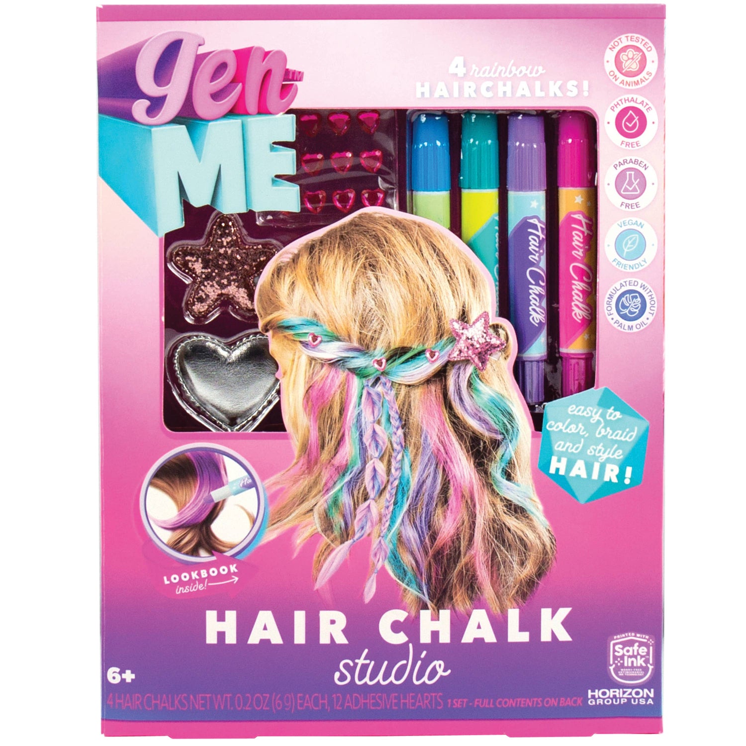 Rainbow hair, don’t care! Complete with 4 hair chalks, hair gemstones, and fun-shaped clips, the GenMe™ Hair Color Studio has everything you need to transform your hair into a vibrant work of art!