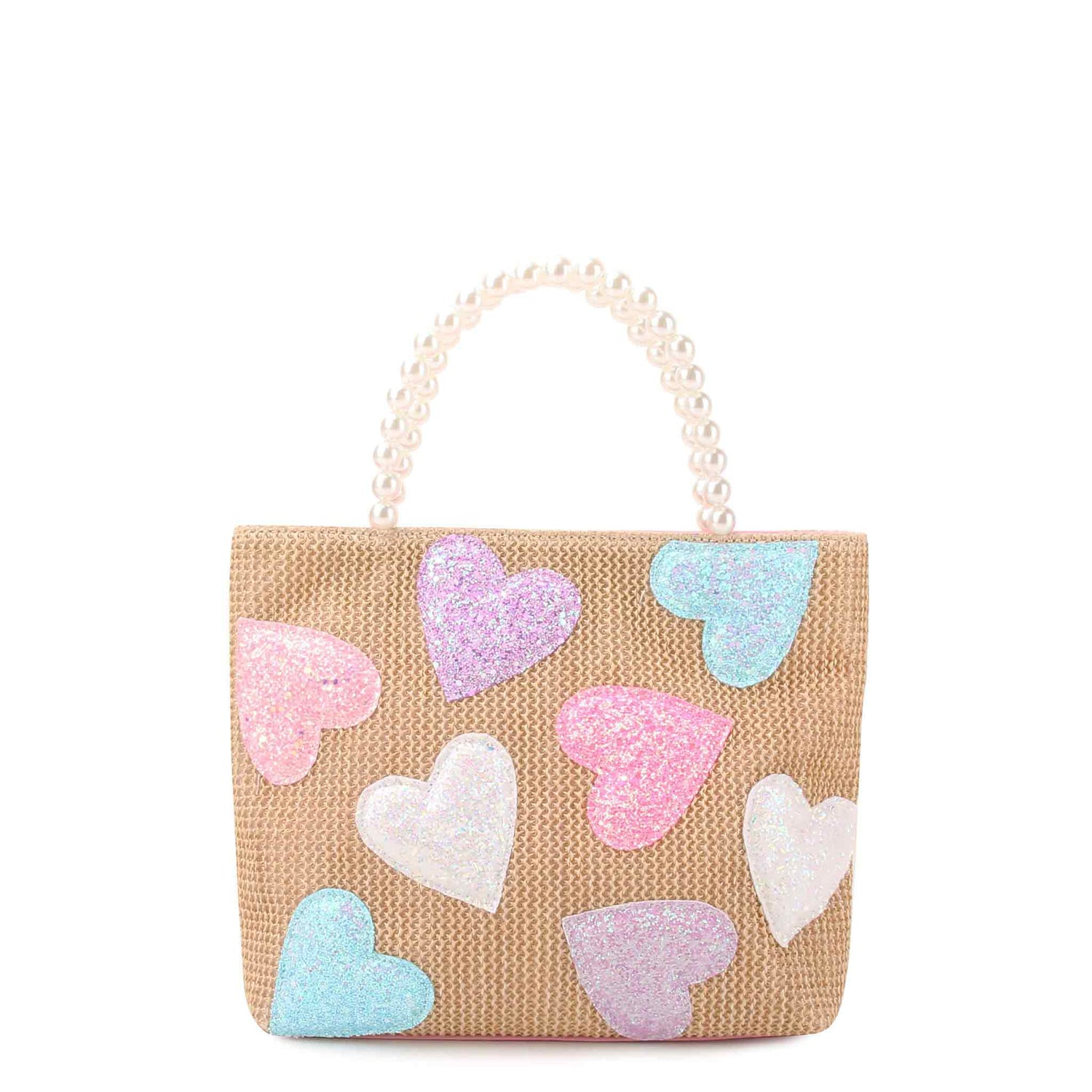 Did someone say summer staple? This trendy straw mini tote is the perfect go-to for any and every warm weather activity! Detailed with colorful confetti heart patches and a matching straw handle, it's perfect for lounging at the beach- or by the pool!