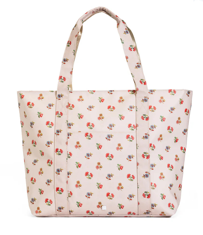 Get around effortlessly with the Jumbo Tote! This do-it-all lightweight tote is useful year-round for all occasions - as a beach bag or for your everyday needs. Underneath the strap is satin webbing designed to prevent from slipping, an interior full slip pocket and zip pocket, a front exterior pocket, and an exterior trolley passthrough.