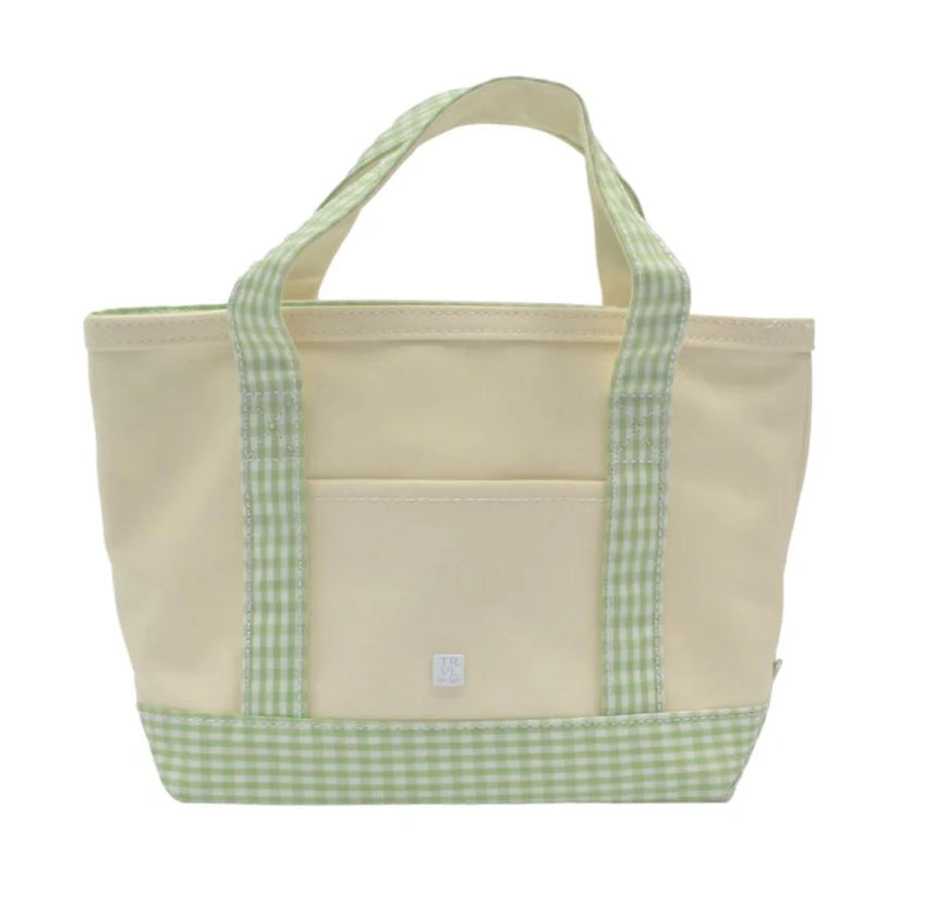 MINI TOTE - COATED CANVAS GINGHAM LEAF GREEN TRIM