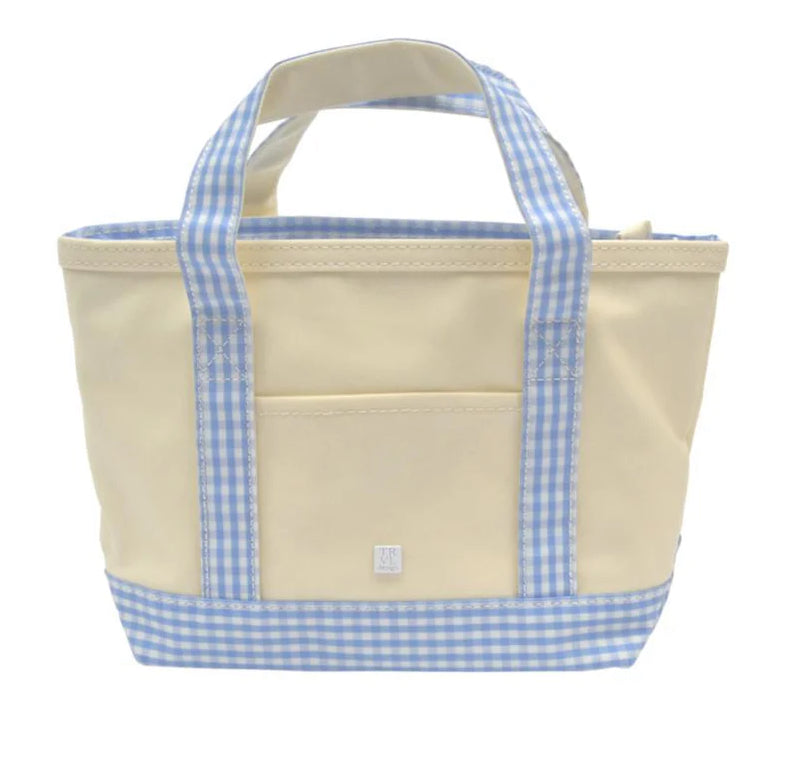 MINI TOTE - COATED CANVAS GINGHAM SKY TRIM