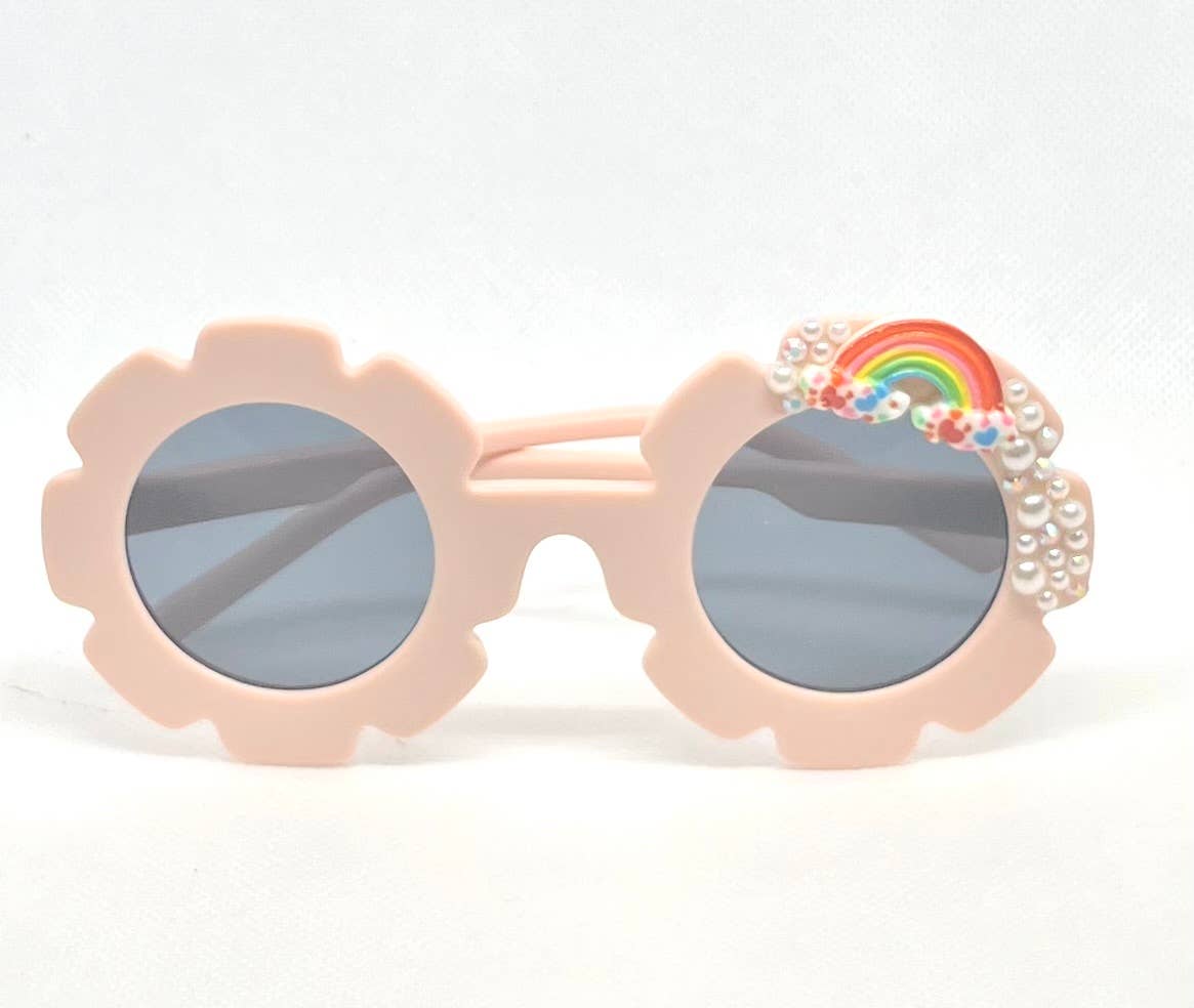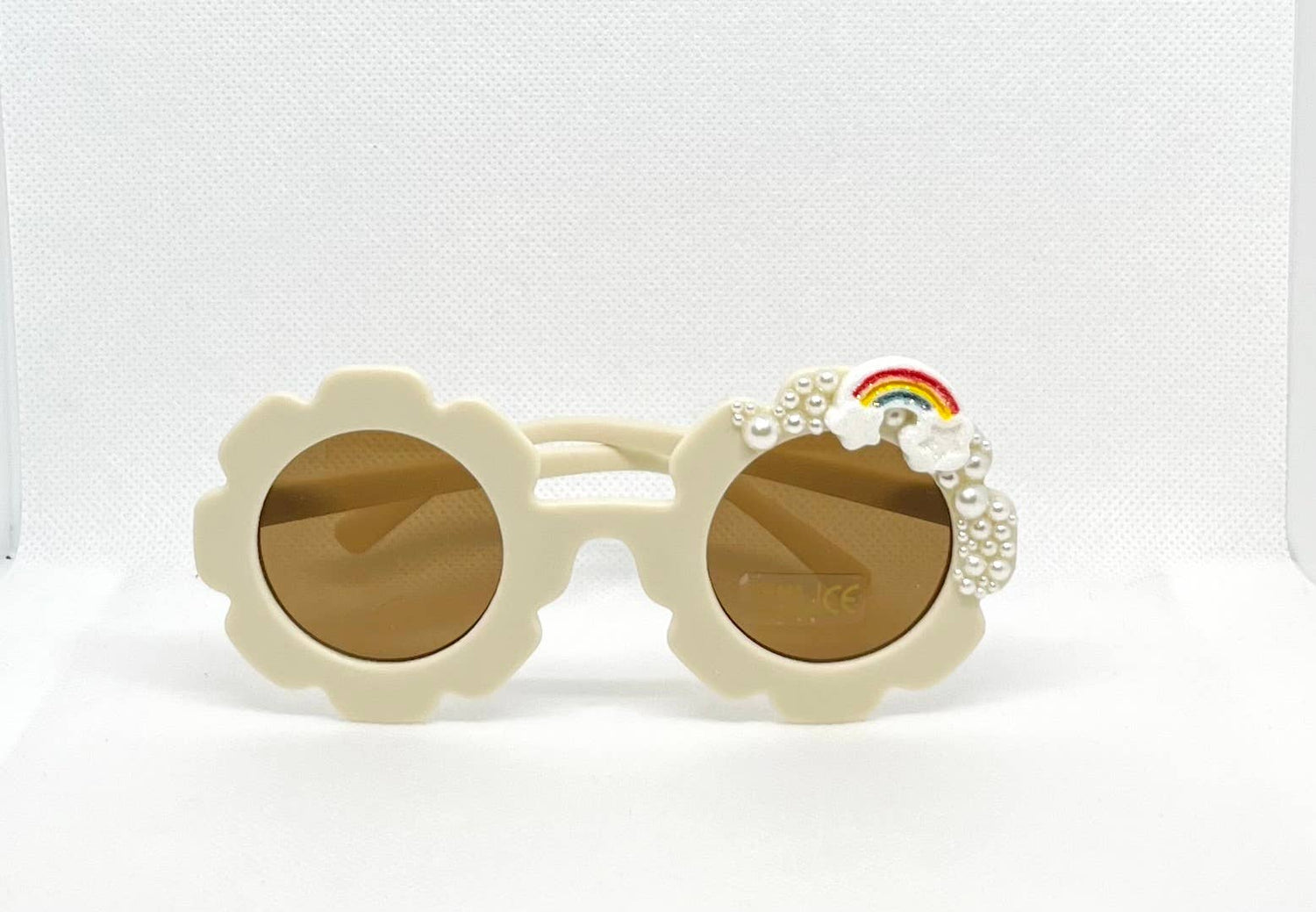 The total width of the flower sunglasses for girls is about 5.11 inches, frame width and height are 1.53 inches, nose width 0.74 inches, leg length 5.31 inches, toddler sunglasses, suitable for children over 2 years old