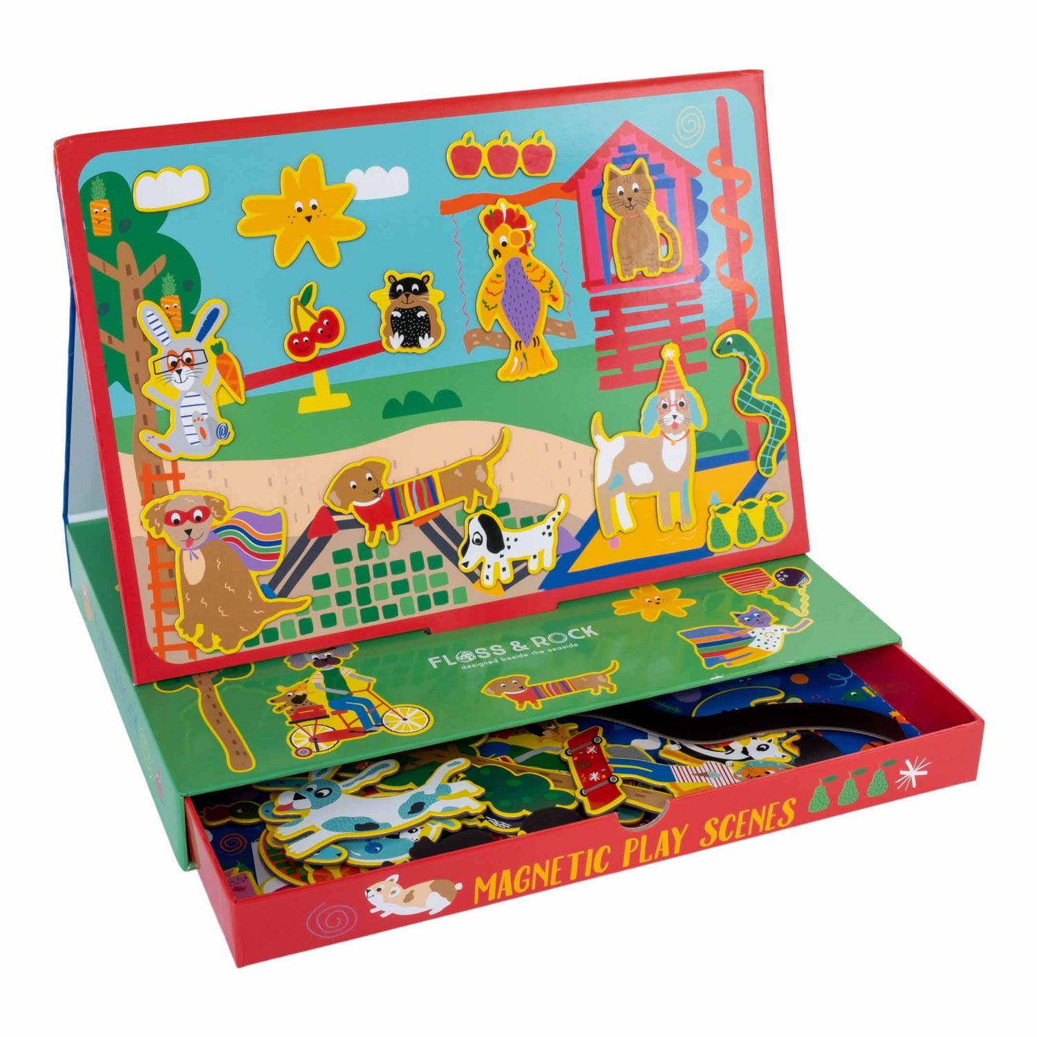 Our Pets Magnetic Play Scene features 2 interchangeable backdrops and over 50 magnetic play pieces. This will keep little ones imaginations running wild, creating fun stories with pets with personality! Play with a terrific tortoise, cool cat, funny hamster, 'super dog' and many more. With a handy drawer to store the spare scene and play pieces and a fold down box lid. This makes the perfect game for home, or play on the move. Being magnetic there's no danger of losing any pieces!