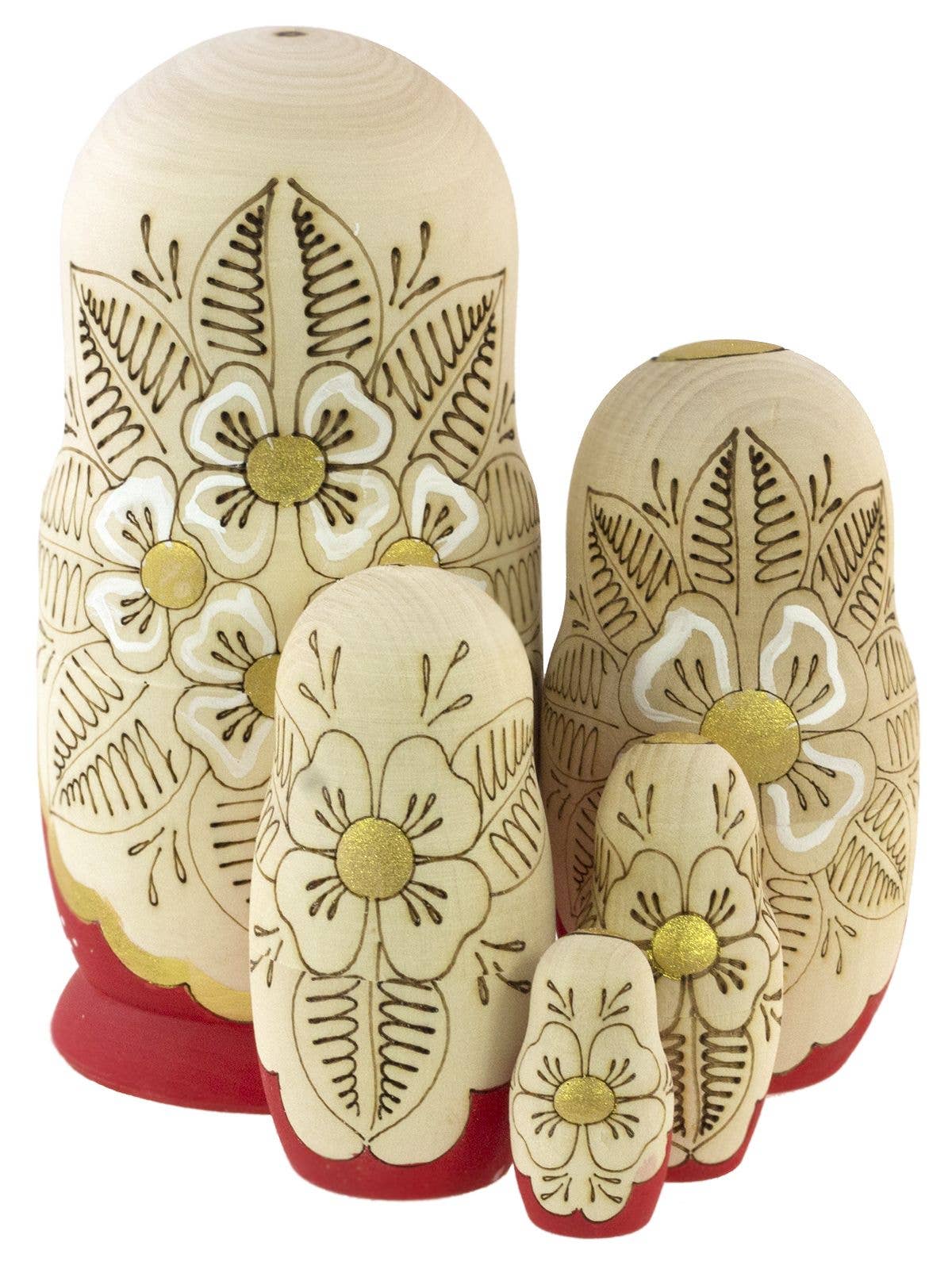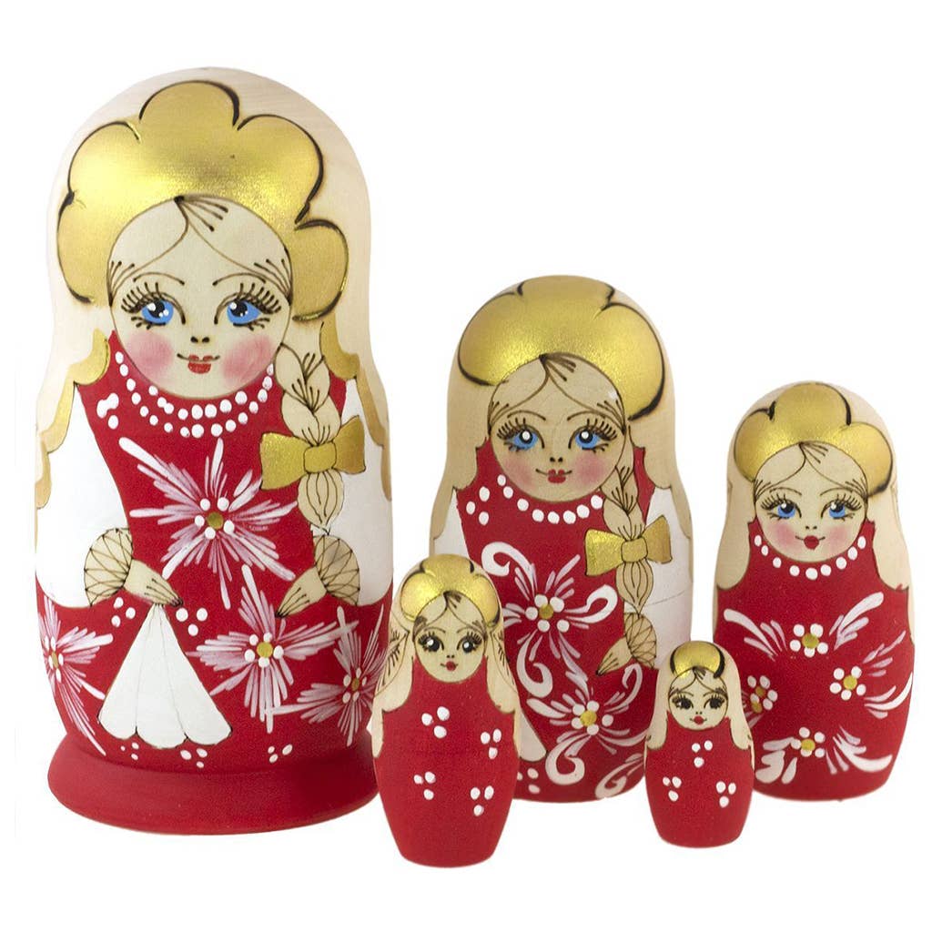 Authentic Russian hand-painted handmade Russian RED nesting dolls set of 5.