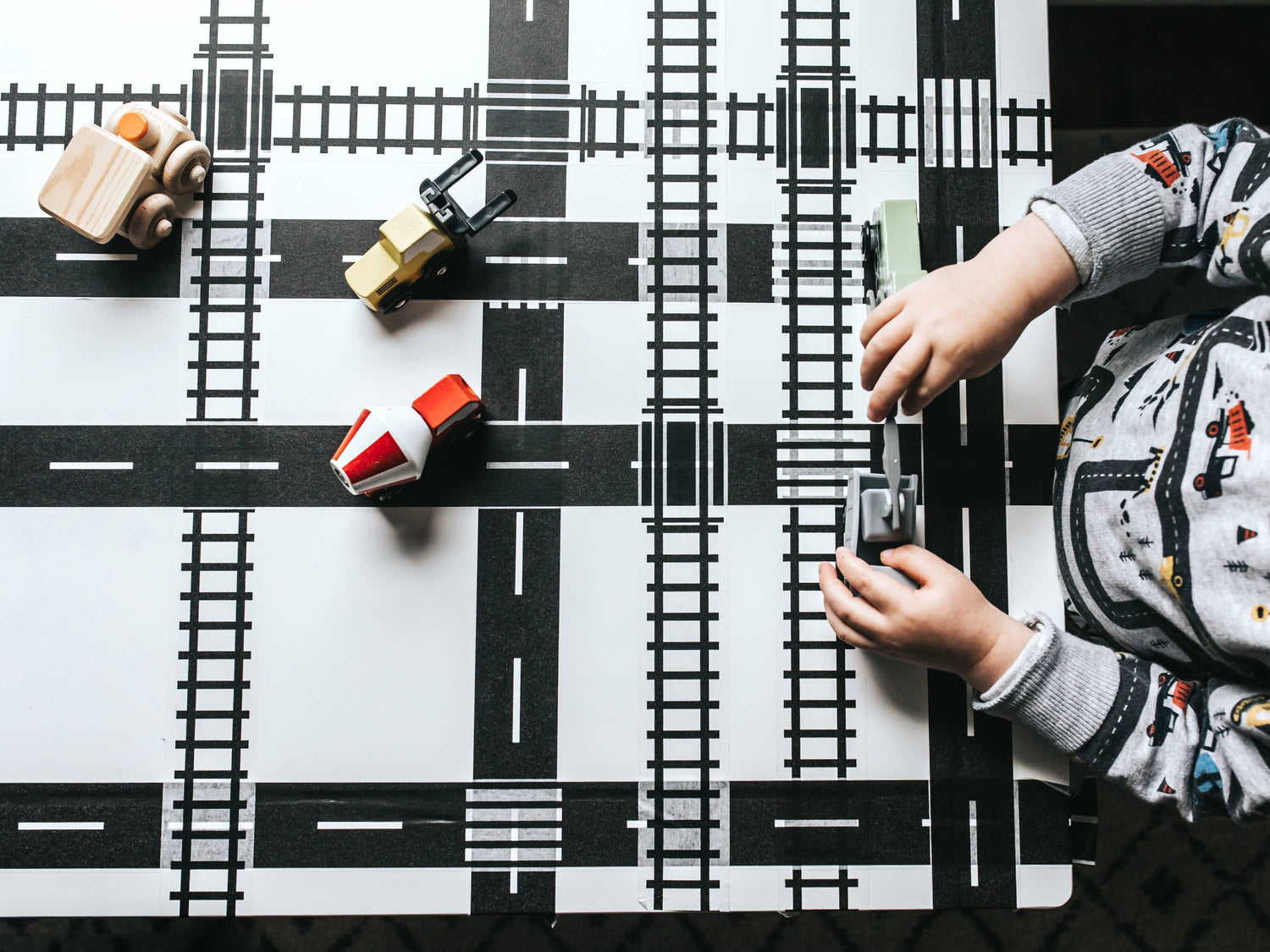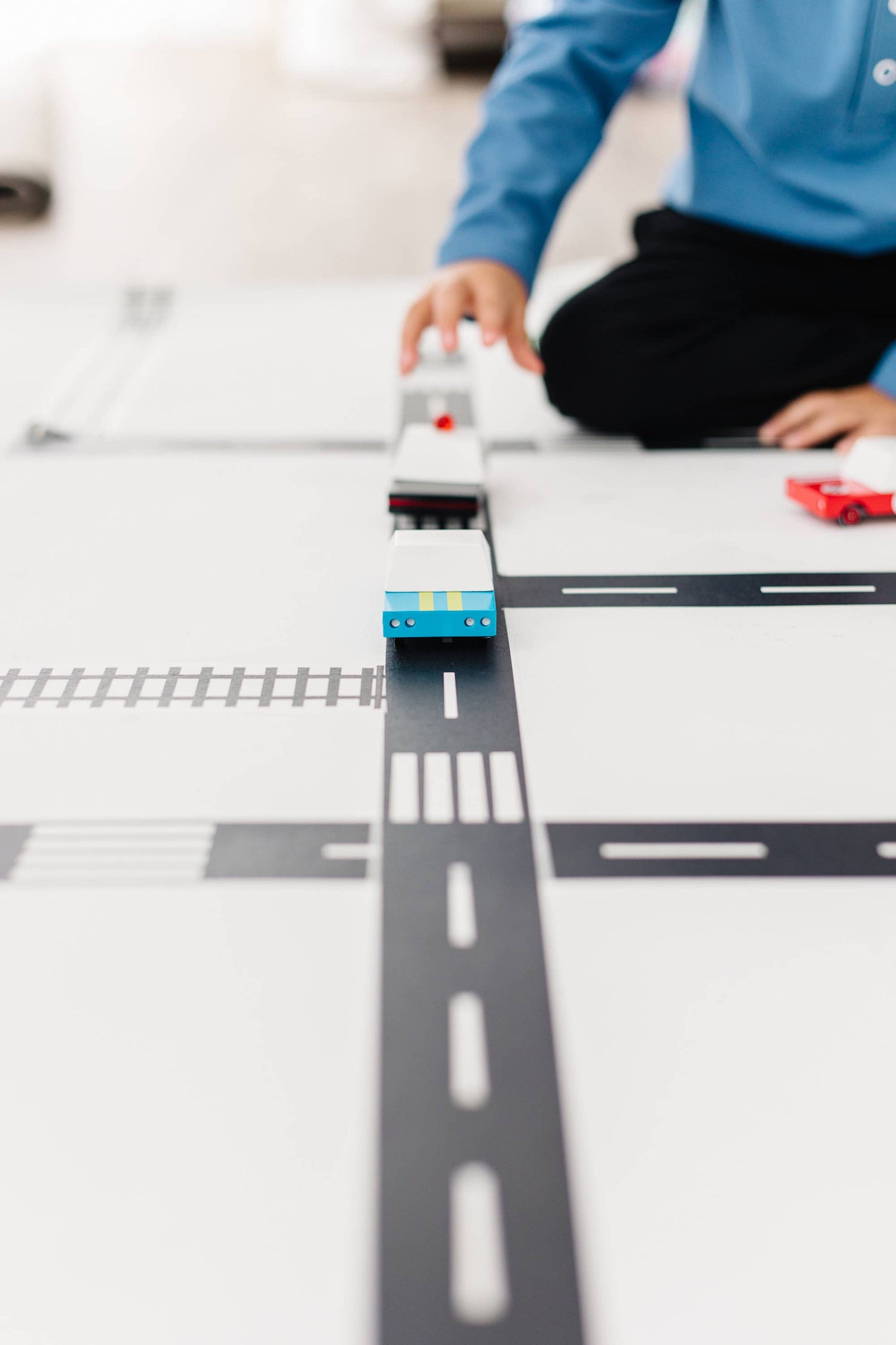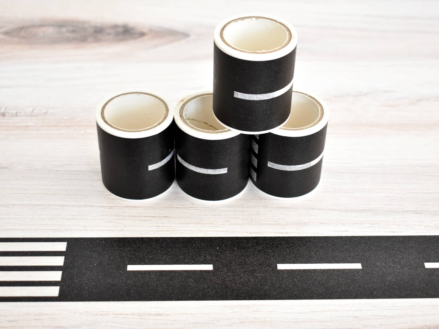 This track and road tape is perfect to have in your bag and is also great for using at home to make tracks wherever you want. It can be used on any surface- the floor, a table even the wall and can be taken off without leaving any residue.