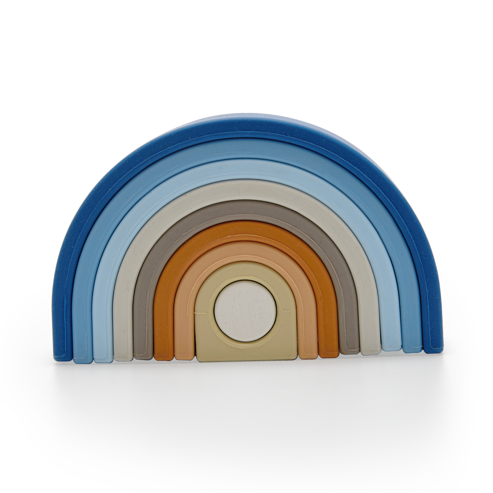 Moover's original toddler and preschool 9-piece set of food grade, waterproof, silicone arches that fit together to form a rainbow. Suitable for boys and girls. Stimulates imagination and helps develop creativity, coordination and inteligence. Many ways to play. Endless play value.