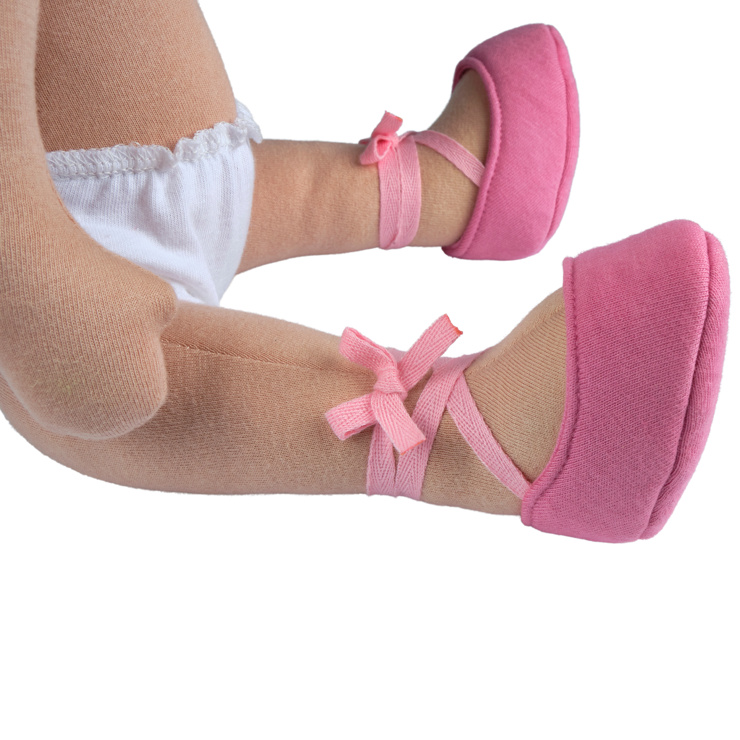 Sofia is precious doll in a lovely printed dress ready to go to her best friends birthday party. She is a soft jointed doll and can be dressed in her special outfits. She has beautiful long brown hair with a special bow and pink shoes to match her dress.