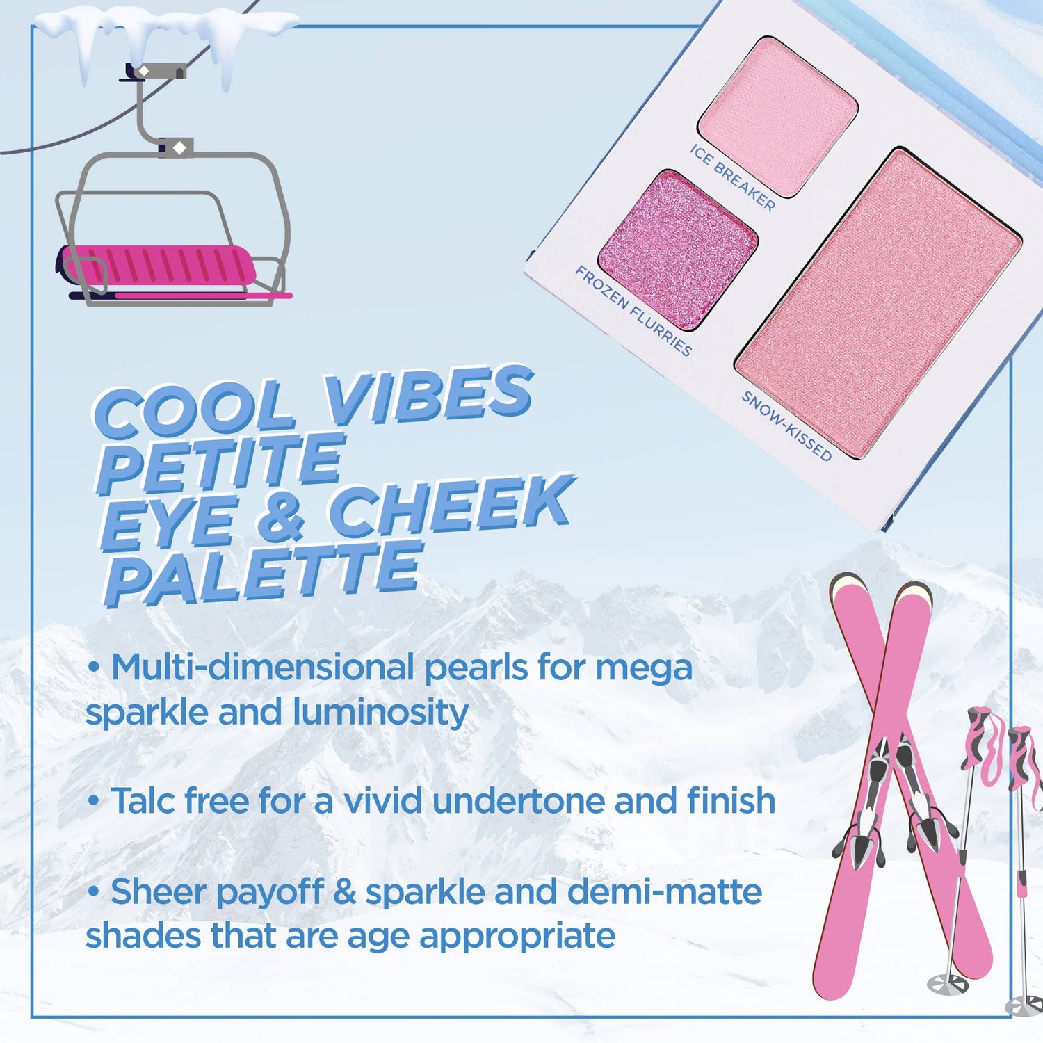 Hit the slopes (or just look like you’re on an Aspen vacay) with this must-have set including our Cool Vibes Eye & Cheek Palette; Deluxe 10K Shine Lip Gloss in limited-edition shade Pink Frost; and Deluxe Sparkly Ever After All Over Glitter in limited-edition shade Fresh Frost. It also features 2 petite-sized eyeshadow and cheek brushes to create your perfect winter glow, and a blue sherpa makeup bag for all your holiday getaways.