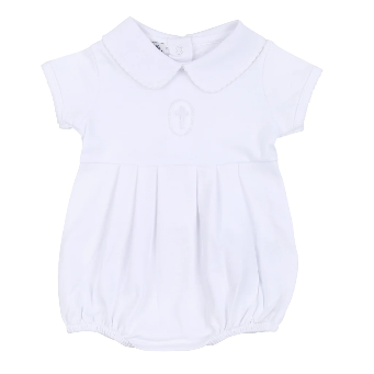 Blessed White Embroidered Collared Sht Sleeve Boy Bubble