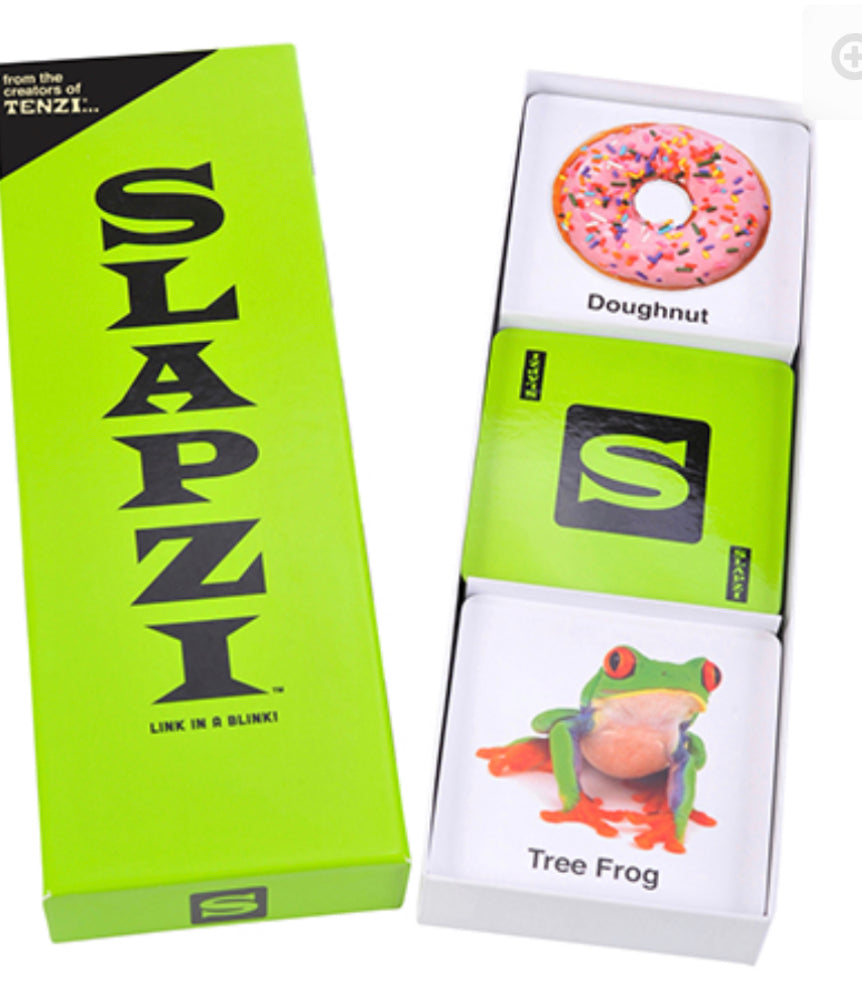 The fast-matching, card-slapping, everyone-laughing picture game! SLAPZI is all about speed. Be the first to match the right picture cards to the right clue cards. SLAPZI is super-simple to learn, and super-fast to play!